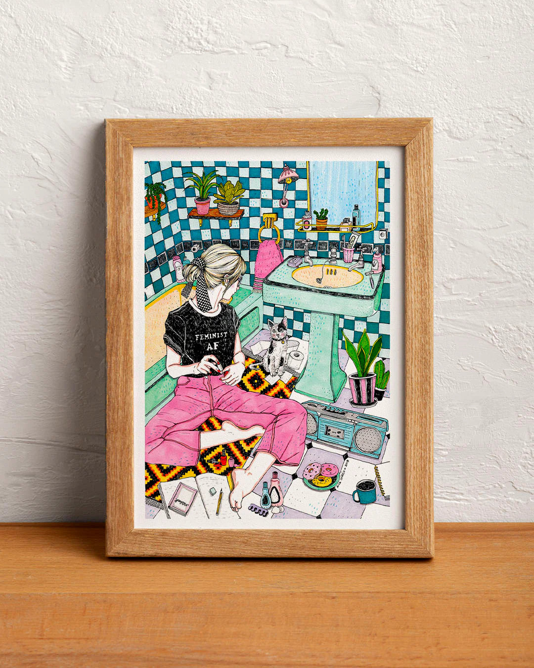 Ilustraciones que reflejan la amistad, y el calor que nos da el hogar. Desayunos, bordados, gatos, amigas, novios, y sofas, todo lo que necesitamos ¡