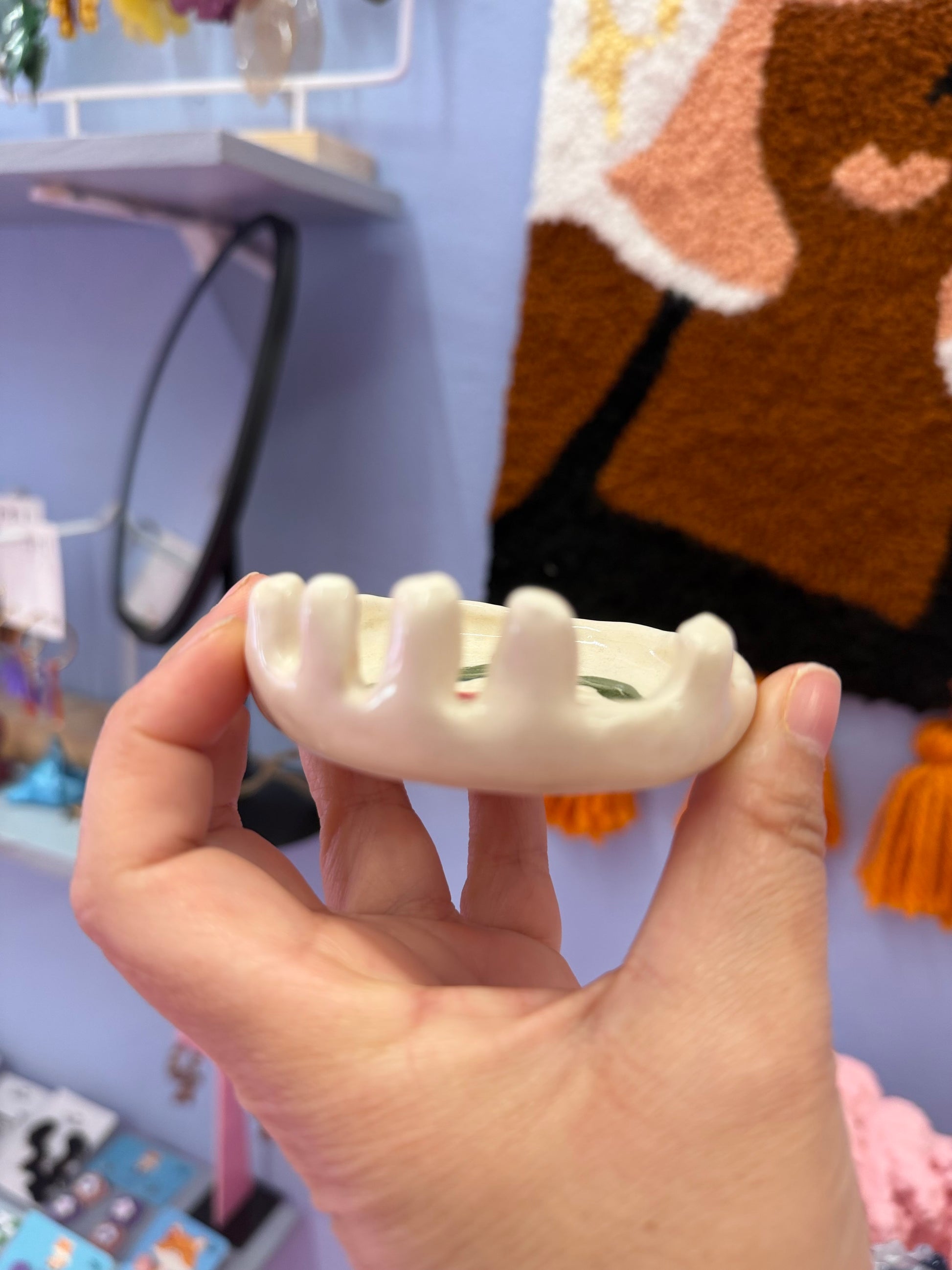 anillero de ceramica con flor rosa