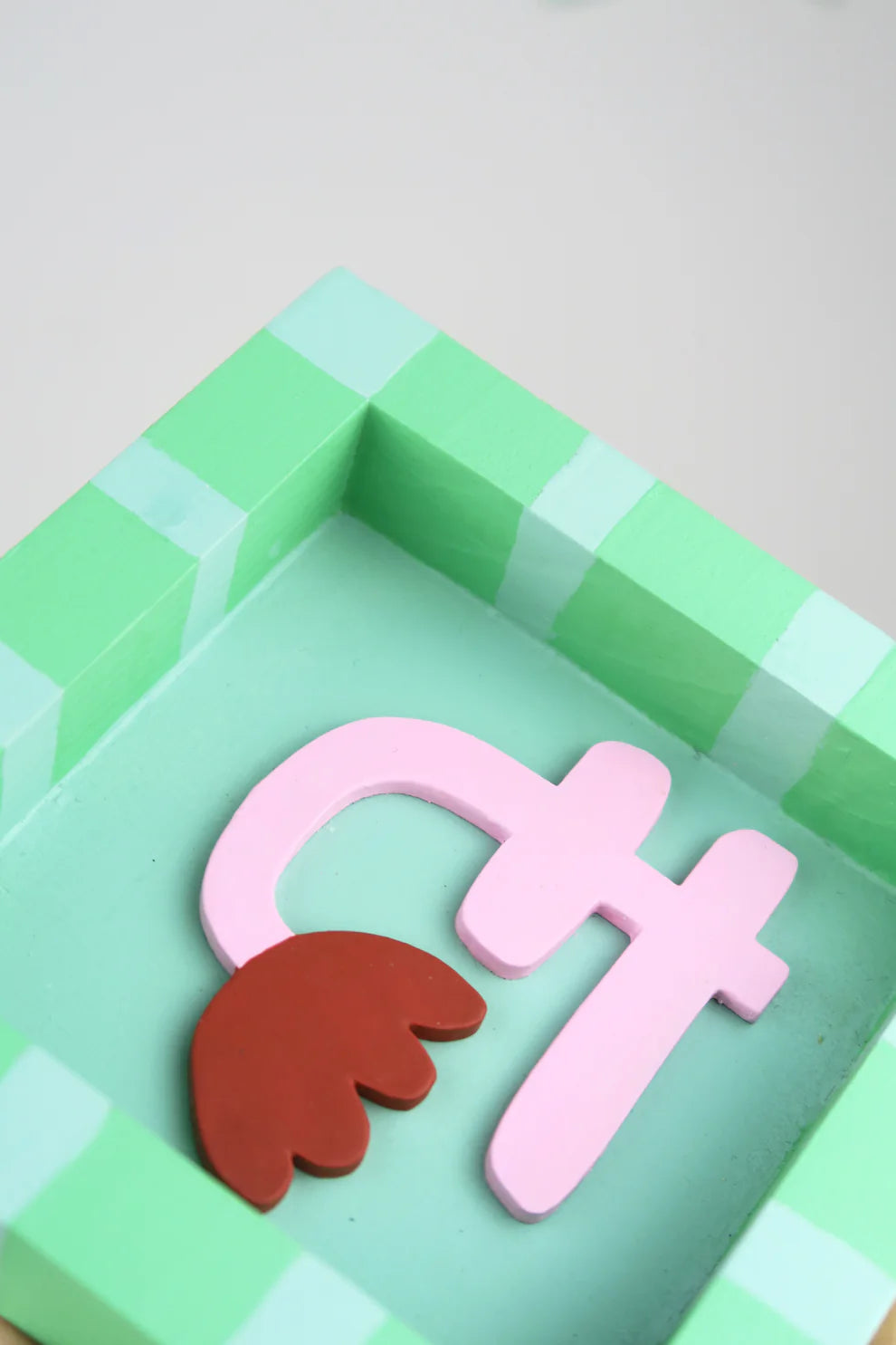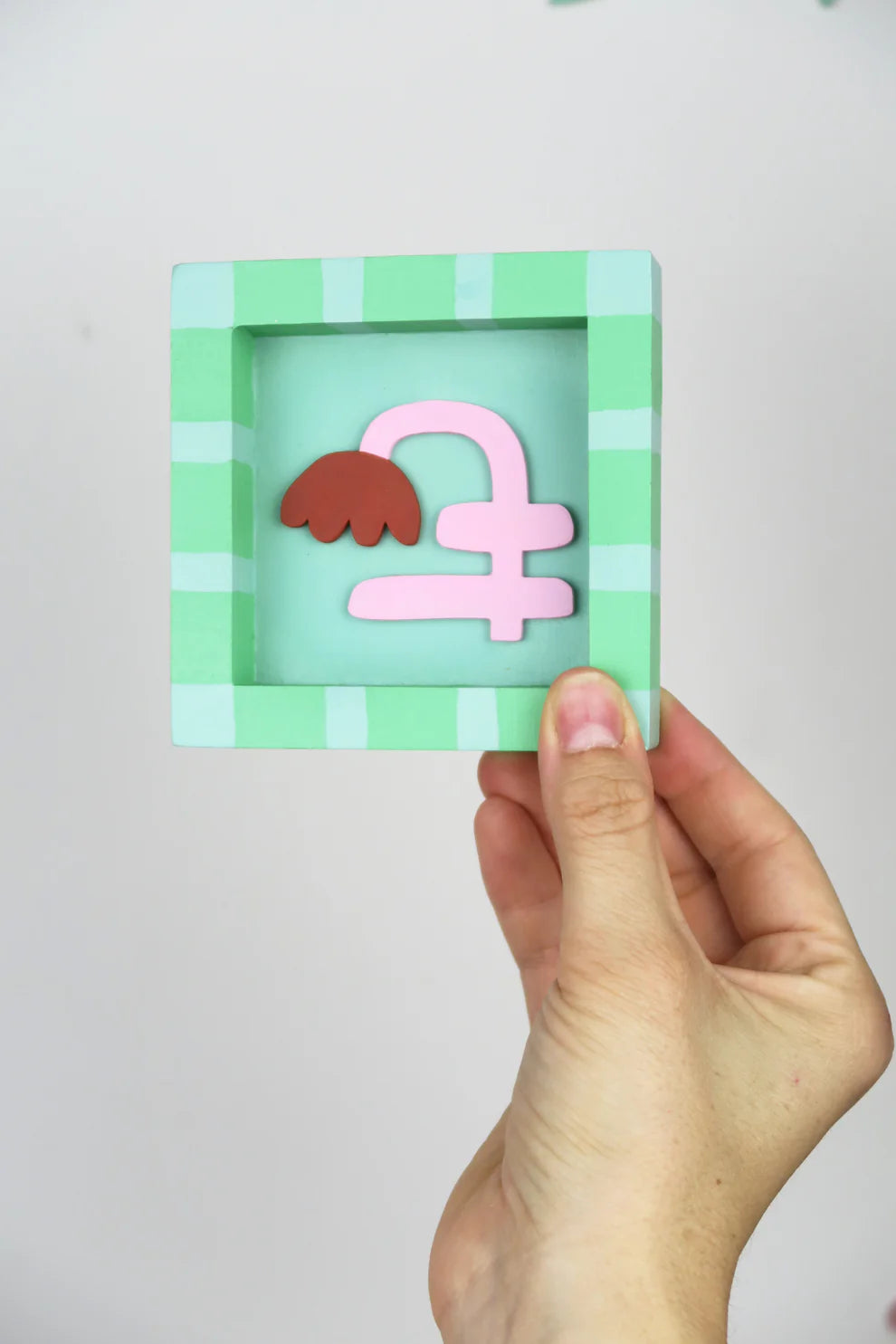 Pequeño cuadro decorativo artesanal hecho a mano, con flores de colores vibrantes sobre madera natural.