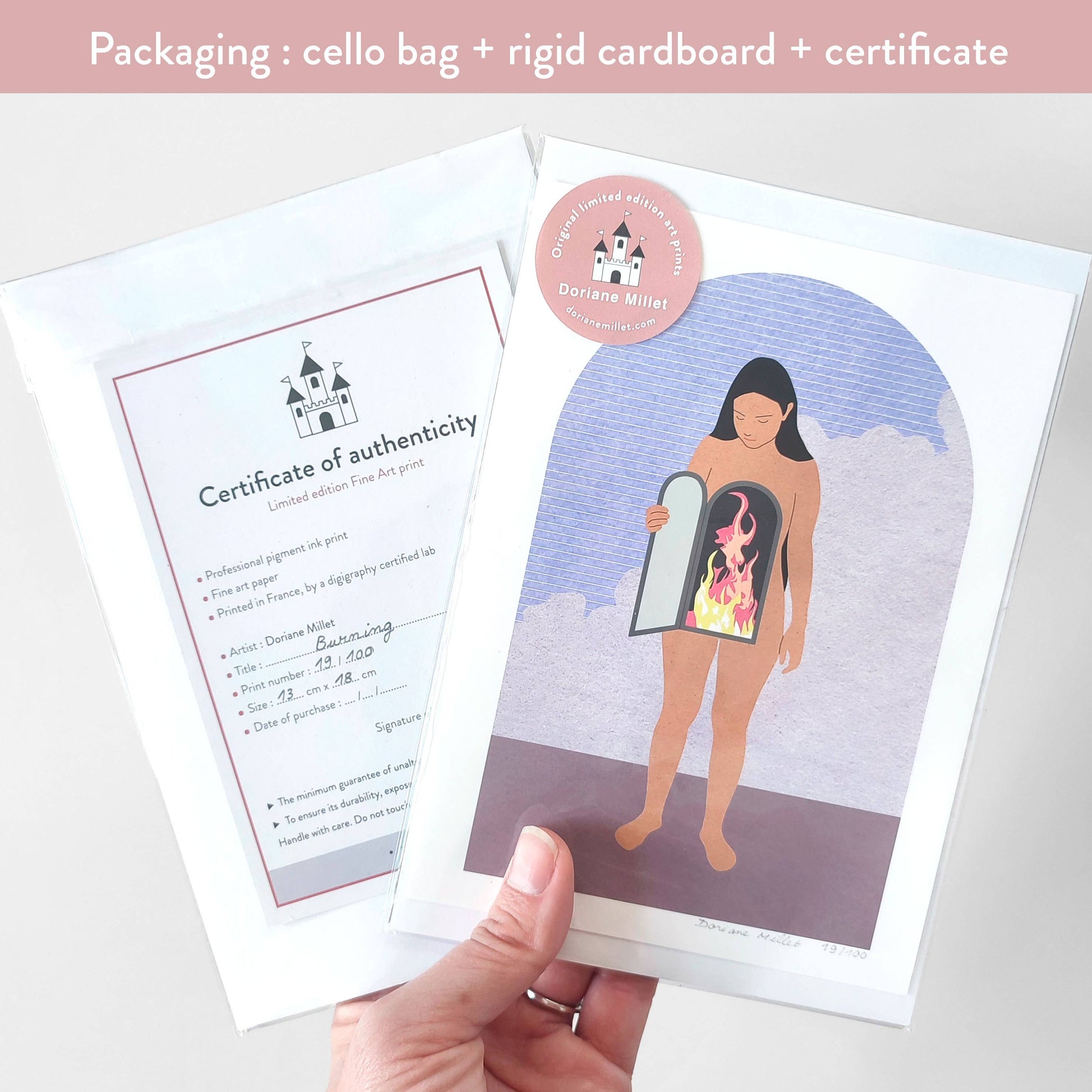 ○ Cada una de las impresiones se empaqueta individualmente en una bolsa transparente y en una hoja de cartón rígida: todo lo que tiene que hacer es colocarlas en su punto de venta.