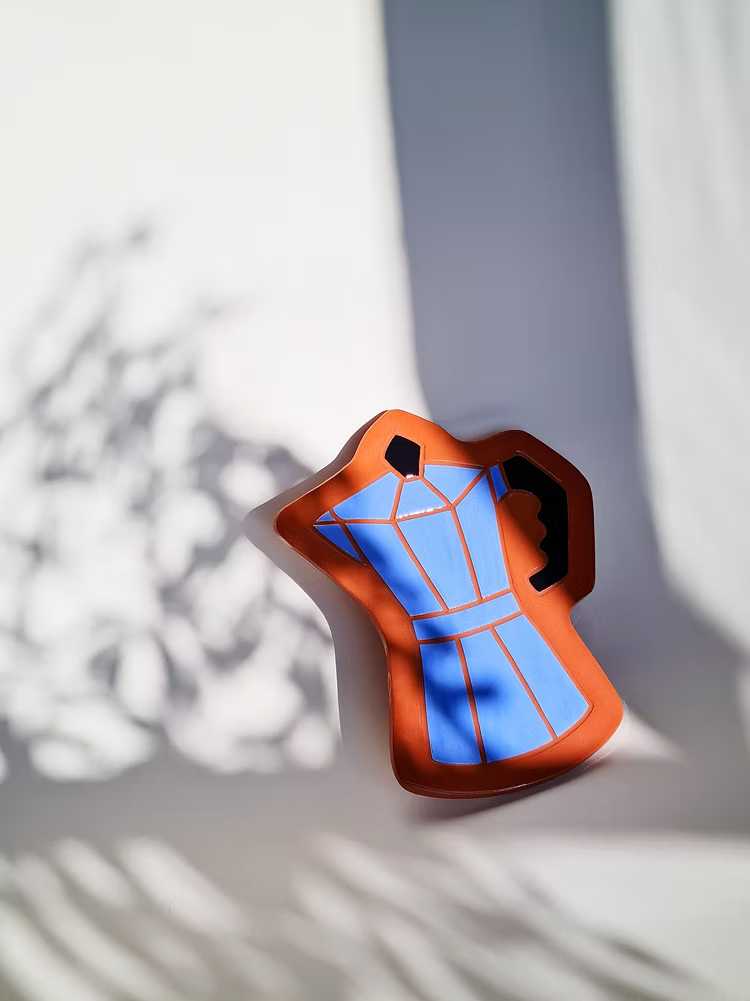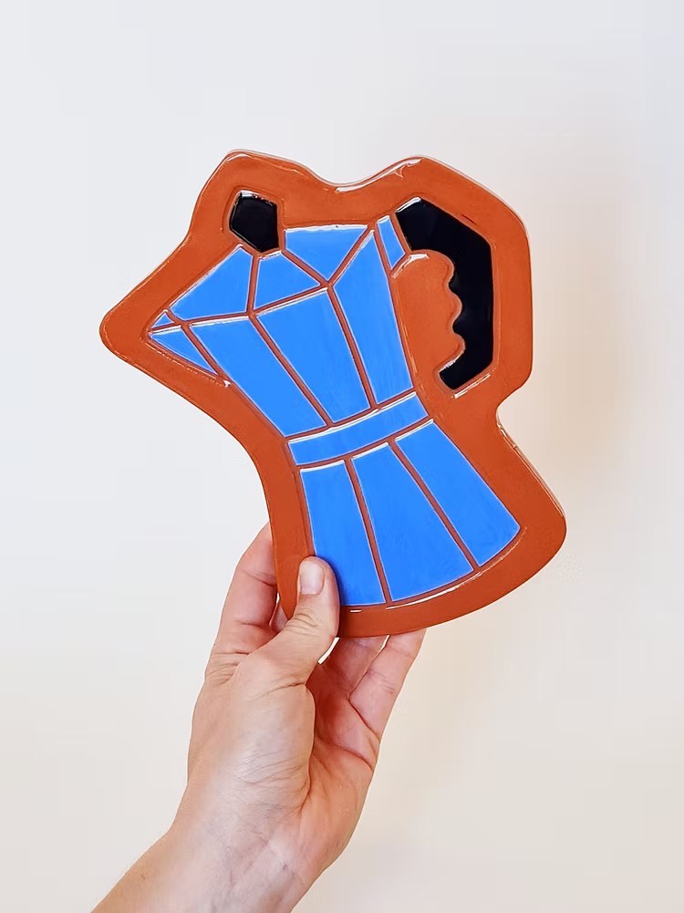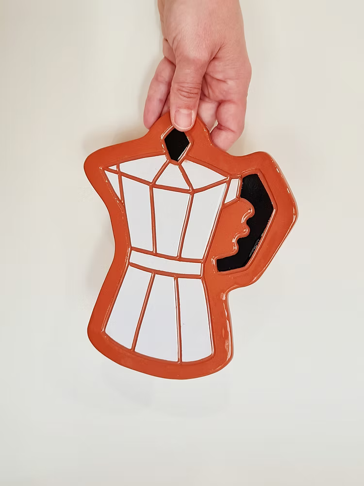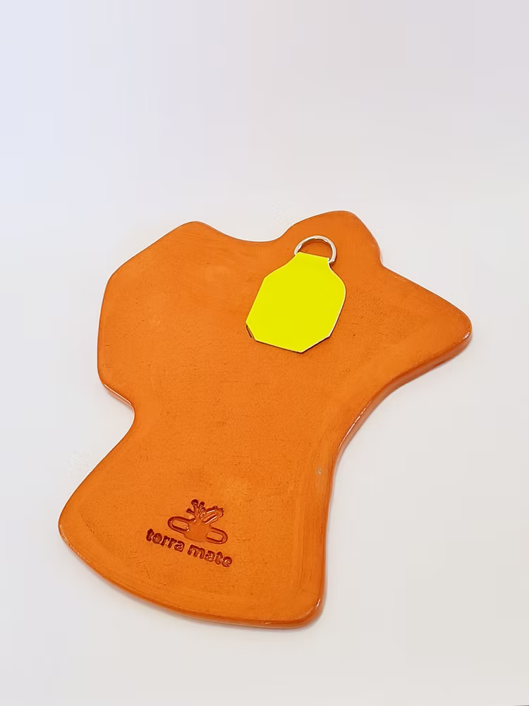 Creado con arcilla roja y coloreado con esmaltes no tóxicos, sin plomo y aptos para alimentos.