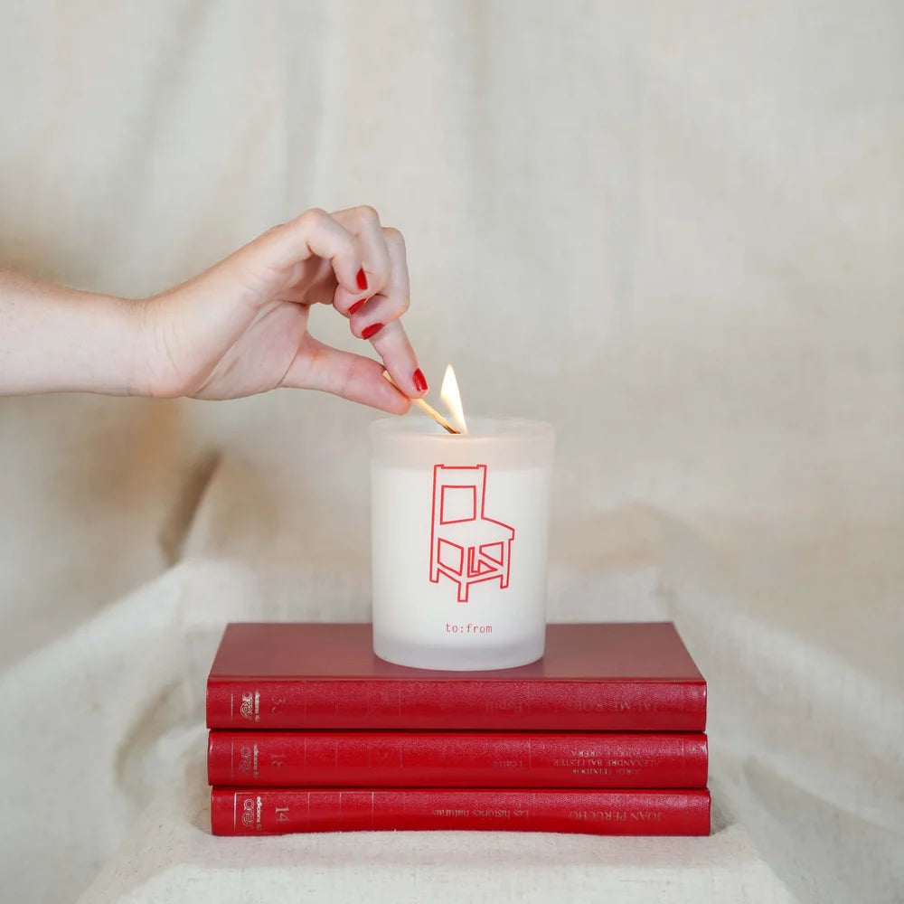 Hecho de cera de soja, aceites esenciales y de fragancia, envasado en envases de vidrio blanco mate serigrafiado.